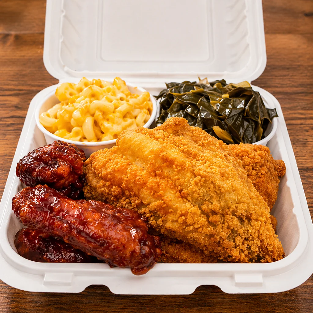 The food was banging the fish the Mac and yams were so so I mean so super good I loved every bit of it the rice the banana pudding ALL THE FOOD WAS AMAZING. tonight omg going again for some oxtails.